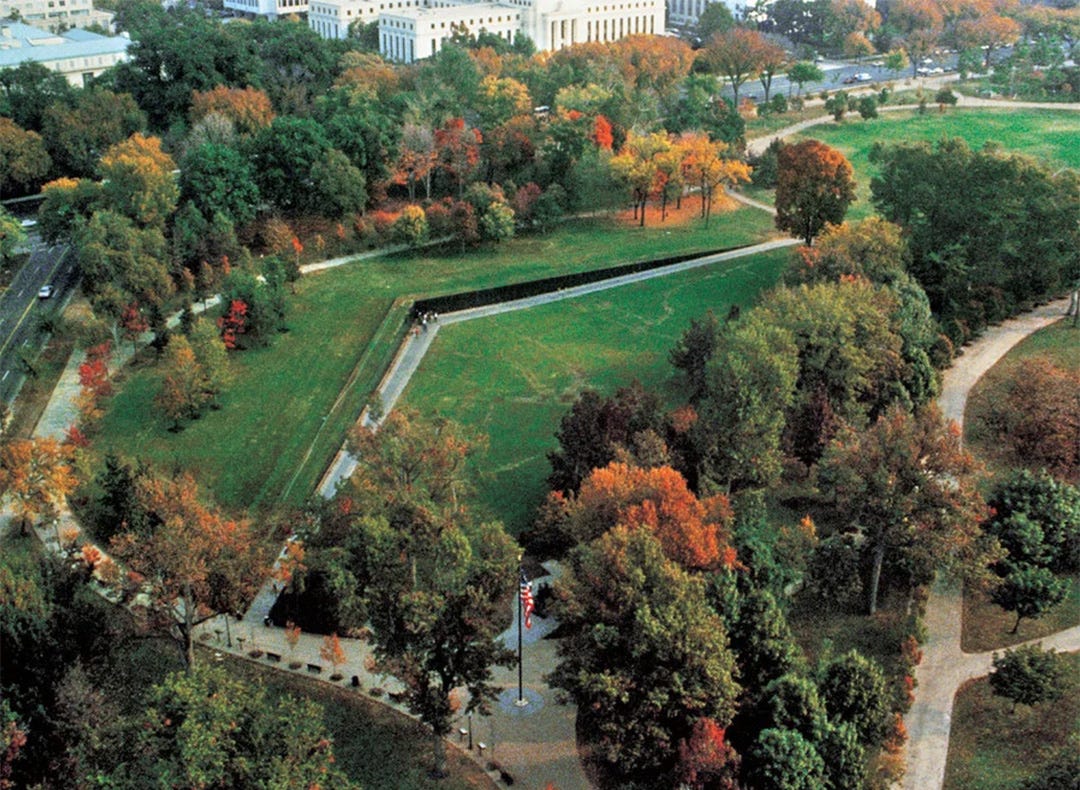 Her design was boldly simple: two black granite walls meeting at an angle, inscribed with the names of the dead and missing, emerging from and returning to the earth. No flags, no statues, no symbolic flourishes. Just names, and the space for people to encounter them quietly.